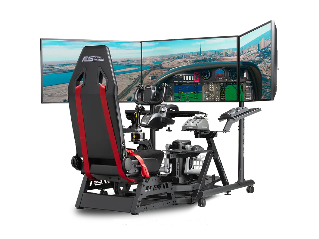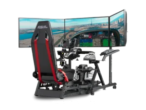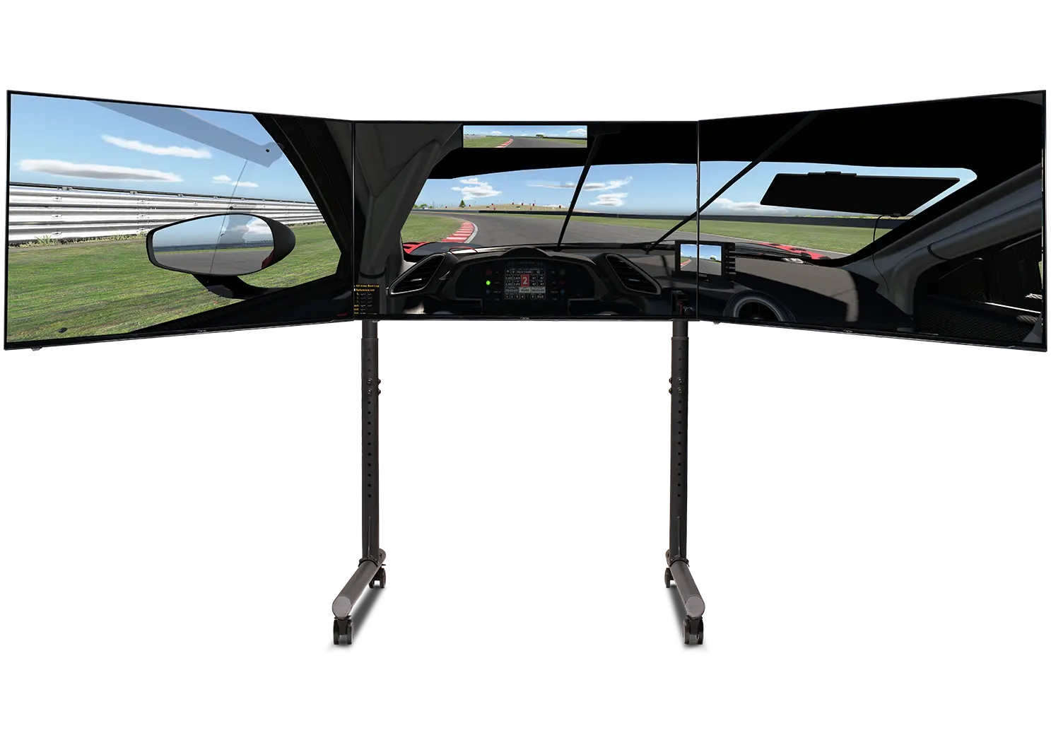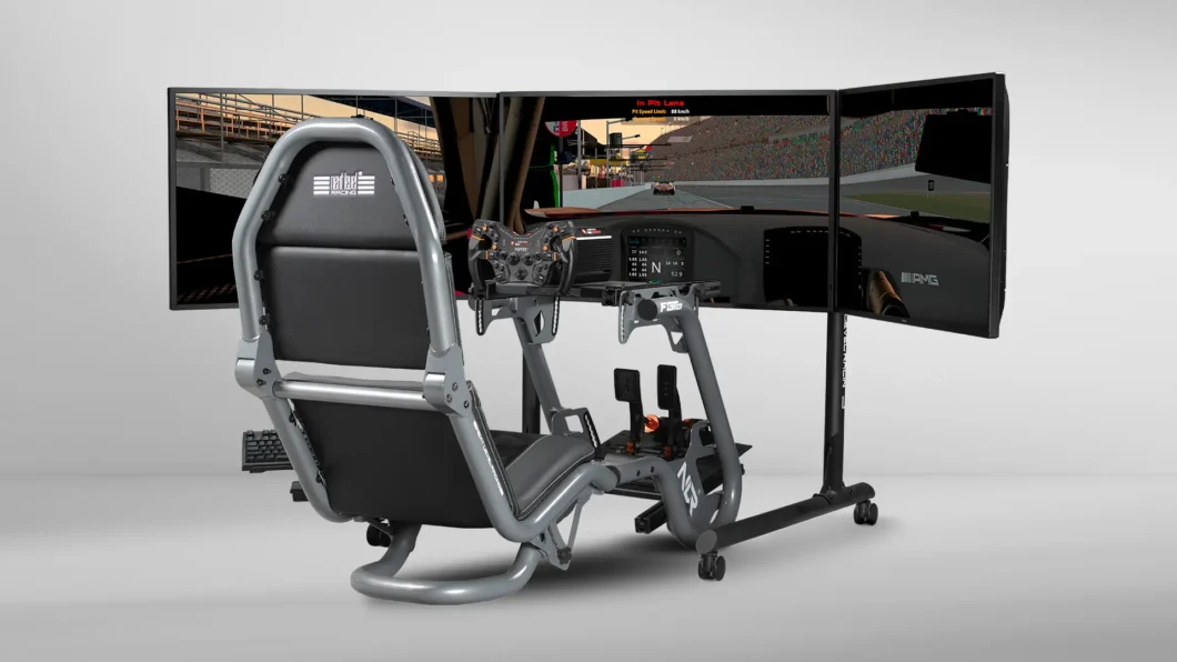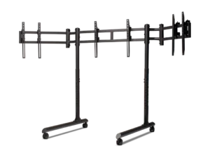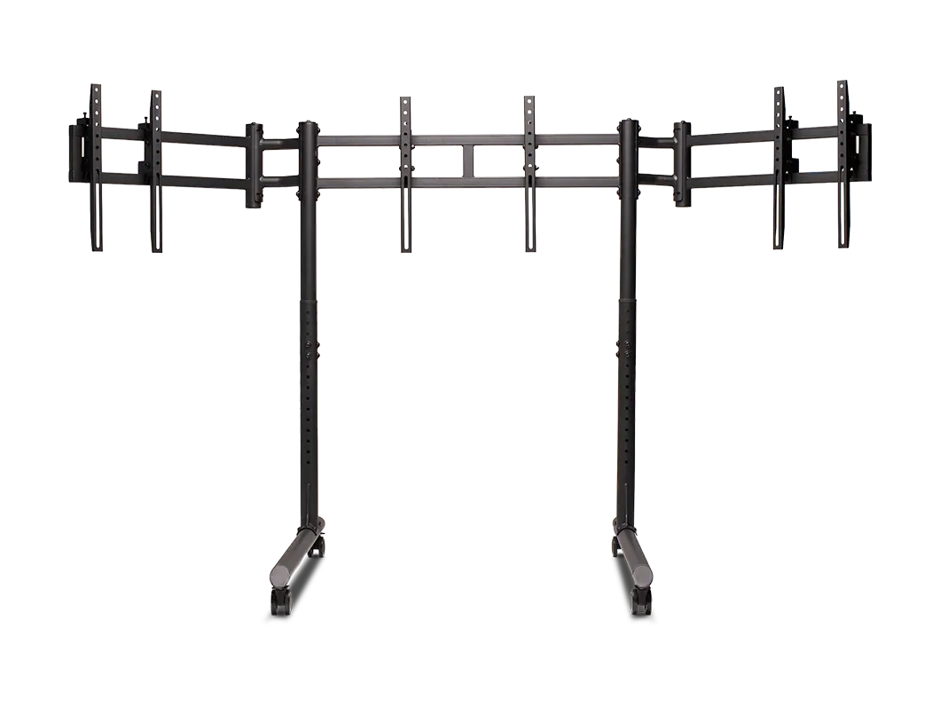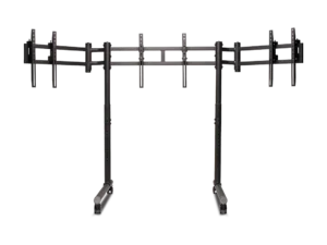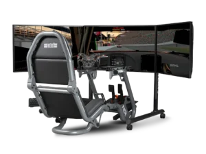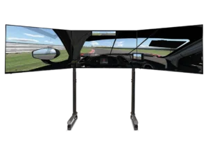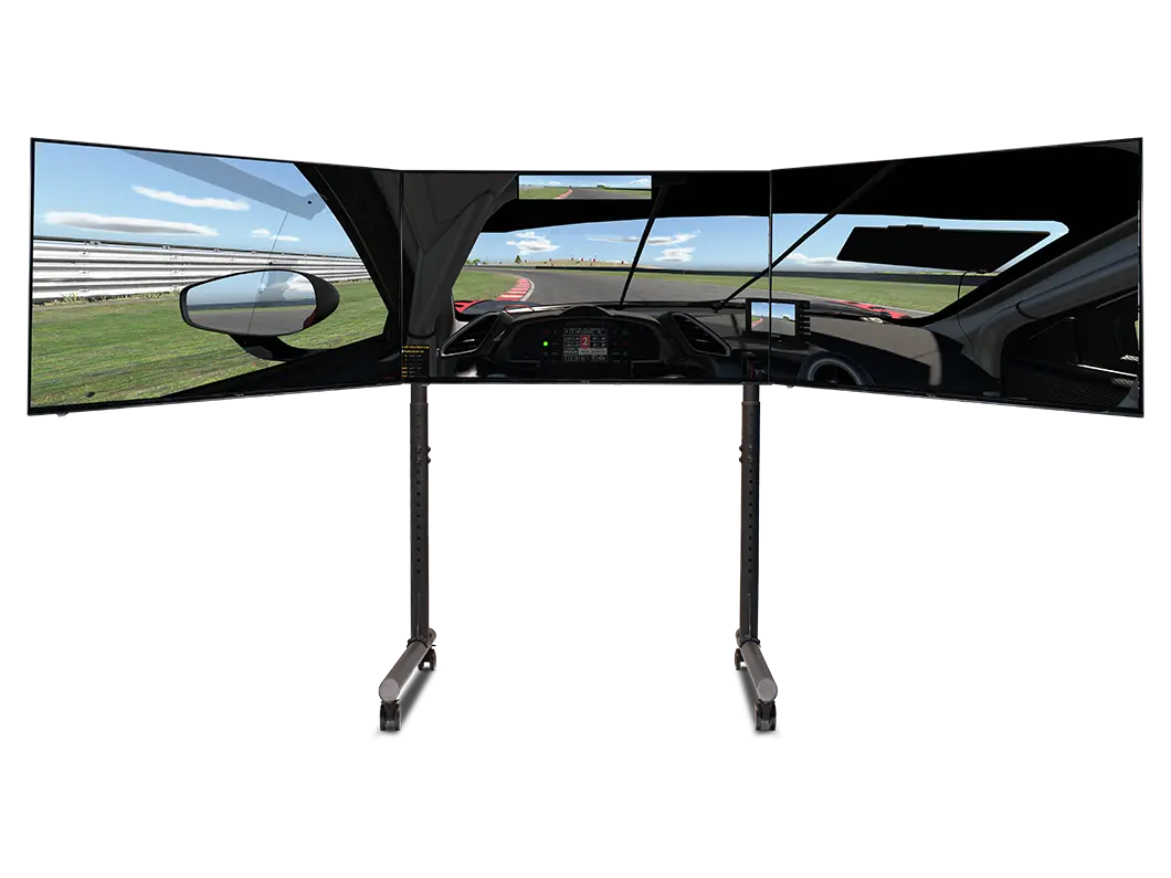 Versterkte zijarmen met dubbele stangen bieden extra stijfheid waar dat het meest nodig is en houden de zijmonitoren stevig op hun plaats. Met VESA-compatibiliteit van 75×75 mm tot 400×800 mm ondersteunt de standaard een breed scala aan monitorformaten die gebruikelijk zijn in high-end simulatie-opstellingen.